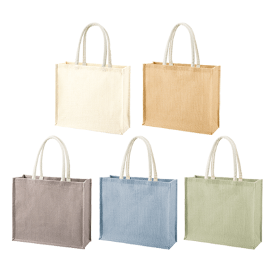 麻素材はナチュラル感たっぷり。ざっくりとしたジュート素材や、やわらかい素材のリネン、コットンよりも褐色がかった素材がナチュラル感を演出しています。また、コットンと組み合わせたトートバッグなどもあり、とても注目度の高い、おしゃれ感のあるエコバッグ、トートバッグです。フルカラー印刷、短納期にも対応しています!ノベルティなら15年以上の実績のカプセルボックスにお任せください!