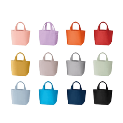 4オンス~14オンスまであるコットンの中でやや厚手の10オンスのコットンでつくった小さめのエコバッグです。とても人気のあるベーシックなタイプで、カラーバリエーションは新色が追加されて15色と豊富。底マチが大きく、お弁当箱を平置きできるランチバッグタイプです。厚みもあり、しっかりとしたエコバッグです。ノベルティなどにも最適です。ナチュラル生地にフルカラープリントするのもおすすめのミニサイズのエコバッグです。