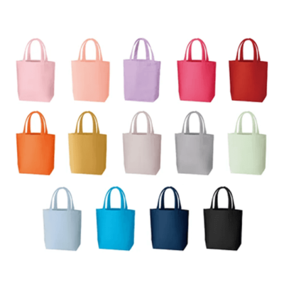 しっかりめの10オンスコットンで作った小さめエコバッグです。ランチバッグとしてはちょっと大きめ。カラーバリエーションは新カラーが追加になり、14色と充実のカラーナインナップ。お弁当やちょっと背の高い水筒も入る日常使いにもぴったりなサイズです。印刷範囲も広めでノベルティとしてアピールできるエコバッグです。ベーシックな船底タイプのトートバッグはとても人気があります。