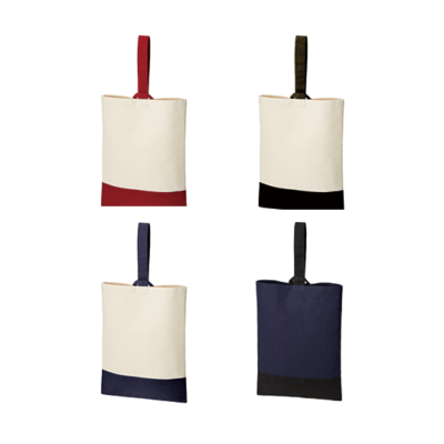 上履きやスリッパを入れられる、シューズケースのエコバッグです。袋口は出し入れ簡単なループタイプ。毎日使う上履き入れや、マイスリッパ入れとして活躍します。おしゃれなツートンカラーに合わせて、オリジナルプリントを考えてみてはいかがでしょうか。