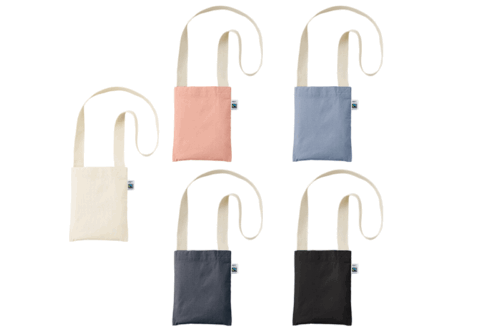 フェアトレードコットンを使用した縦長のベーシックなシンプルサコッシュです。5オンスの厚みがあり透け感の心配もなくしっかりとした生地です。 縦長の形状はスマートフォンや小物、文庫本などちょっとした外出に肩から斜めがけして、ポケットのように使用できるおすすめのエコバッグです。 国際フェアトレード認証ラベル付きのアイテムとなっており、SDGsやサスティナブルへの取り組みで企業価値を高められます。