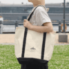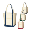 厚手のしっかりとした12オンス生地で作った、持ち手と底にカラーコットン生地を施したアウトドアな雰囲気のベーシックなエコバッグ。厚手なのでとにかくしっかりしています。底マチも広く、外ポケットもあります。カラーバリエーションは4色ございます。質にこだわったしっかりエコバッグを作りたい方におすすめです。外ポケットはスマホを入れたり、使用頻度の高いものを入れておける便利さがあります。底と持ち手がカラーになっているので汚れやすい部分のカバーしているアウトドア向けのバッグです。