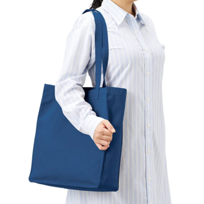 ボックス型と独特な生地の風合いが特徴の、肩掛けトートバッグです。13ozの丈夫な厚手生地は毎日使うようなメインのバッグとして活躍します。オリジナルプリントの物販品や高級ノベルティにおすすめです。持ち手のアウトハンドルがおしゃれ。ナチュラルでトレンド感のある、豊富なカラーバリエーションも魅力的です。A4サイズが余裕で収まり、ゆったりと肩に掛けられます。