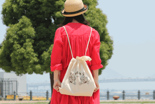5オンスの薄手コットン生地で作ったナップサックです。開口部が巾着で、持ち手があり2WAYで使用することが可能です。カラーバリエーションは4色ございます。背中に背負えるタイプのコットン素材は技ありです。プリント範囲も広いのでオリジナル印刷のレイアウトがしやすいのがメリット。
