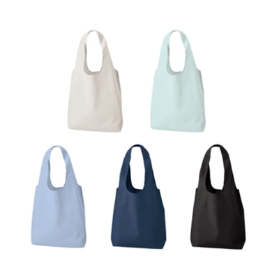 肩掛けしやすいくり手デザインのトートバッグ、ハンドルのトップは二つ折りになっているので丈夫な仕上がりに。5ozコットンは折りたたんでもかさばらず、適度な厚みかつ軽量なので、お買い物のエコバッグとしておすすめです。基本のナチュラルと、他さわやかなカラーバリエーションをご用意しています。