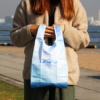 スーパーやコンビニで使用しているレジ袋の形のエコバッグです。素材は、しなやかな艶のあるポリエステルで作成しています。しわになりにくい、高級感のある生地です。買い物にとても最適なサイズ感。オリジナルの生地を作ったかのように余白なしの全面にフルカラー印刷できるプレミアムなエコバッグです。内ポケットが標準で付属していて、折りたたみコンパクトに収納することができます。ポリエステルの生地にフルカラー印刷してから、エコバッグを製作。通常のエコバッグ製作で見かける印刷範囲などに縛られることなく、オリジナルデザインをフルカラーでプリントすることが可能です。内ポケットやパイピングなどにも印刷できますので、こだわりのあるオリジナルエコバッグのご製作をお考えの方におすすめのエコバッグです。