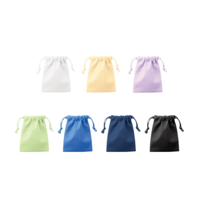 多彩なカラーバリエーションが魅力な、小さな不織布巾着です。不織布は安価なので大ロットなどにもおすすめ、ギフトやノベルティの包装資材としても。プチサイズでイヤホンケースなどの小物入れに最適です。小さいのでオリジナルデザインがなお映えます。