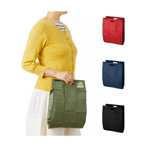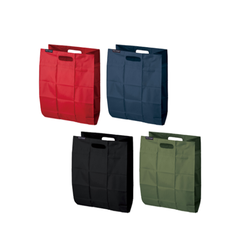 グッドデザイン賞を受賞したポケットスクエアバッグです。格子状にプリーツ加工を施し、簡単にカードサイズ相当まで折りたたむことが可能です。シンプルなデザイン、かつシャツの胸ポケットにも入るコンパクト設計なので、今まで使用してこなかった男性でも使いやすいアイテムとなっております。レジ袋と同じガゼットマチ仕様のためマチも広く、コンビニのお弁当も入ります。店舗のオリジナルグッズや成約記念品など幅広くご提案頂けます。