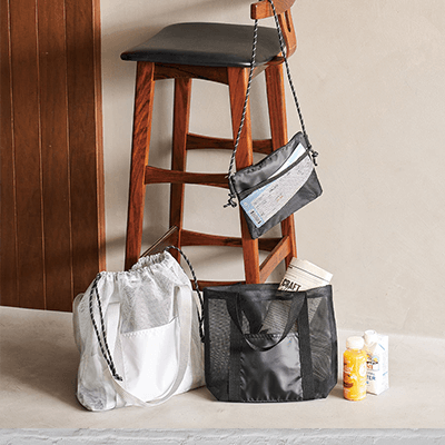 メッシュ素材でつくられたトートバッグで、通気性がいいので普段使いにはもちろん、プールやキャンプなどのレジャーシーン、温泉やトレーニングジムなどの施設の販促品にぴったりのトートバッグです。メッシュの隙間から中身が透けて見えるので、お気に入りのアイテムや店舗のロゴが入ったアイテムをチラ見せできちゃいます。他と違う風変わりなトートバッグを製作したい方におすすめです!