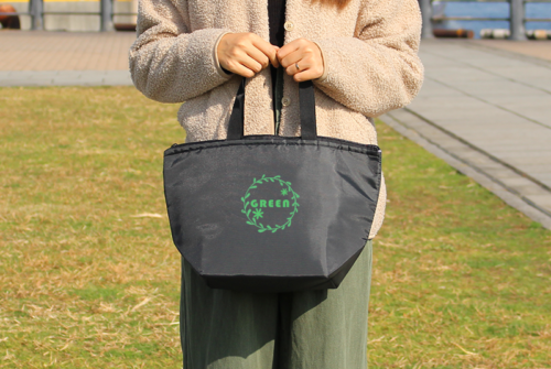 ポリエステル素材の保冷・保温機能付、ベーシックなエコバッグです。内側にはアルミ蒸着フィルムが施してあり、開口部はチャック付です。Mサイズはコンビニのお弁当や冷凍食品なども入れやすい、ワイドマチです。スーパーでのちょっとしたお買い物にも便利なサイズ感です。カラーバリエーションは3色ございます。