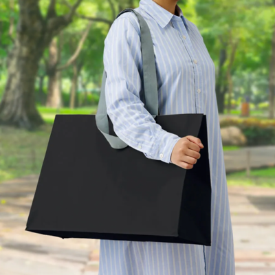 軽いレジャーシート素材で作られた持ち運びに便利なトートバッグです。再生PP素材を使用しているSDGsに貢献するグッズになります。濡れにくい素材なので、雨の日にも大活躍!ランドリーバッグとしてもおすすめです。手持ちと肩掛け両方可能な2ハンドルは荷物の量に合わせて持ち替えられるのがポイント。カラーは優しい4色展開で男女年齢問わず誰でも持ちやすいラインナップです。