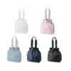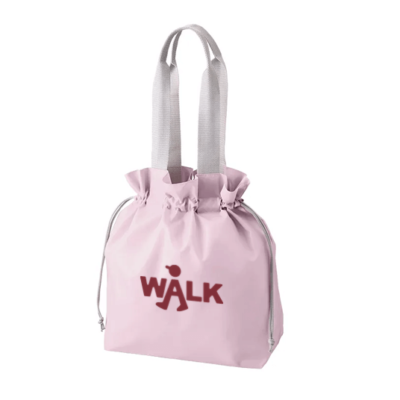 フリルのデザインがかわいい、ポリエステル素材の巾着バッグです。こちらのMサイズはA4サイズが横にきれいに収まるサイズ感で、メインバッグとしても。ハンドル部分は二つ折りになっているので肩にかけやすくストレスフリー、しなやかで耐久性のある生地を使っているのでアクティブシーンにも活躍します。スポーツイベントのノベルティなど、様々なシーンでおすすめです。