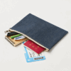 使い込む間に風合いが増すデニム素材を使用したおしゃれな印象のフラットタイプのデニムポーチです。SS・S・Mサイズの3サイズ展開で、Mサイズはしっかりとしたサイズ感で通帳などをいれておくのにも便利です。また下着等も入るので、トラベル用の仕分けポーチとしてもぴったりです。ファスナーの引き手部分はデニムと相性の良い、アンティークゴールドの色味になっています。使い込む間に風合いが増すデニム素材です。