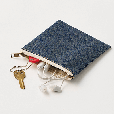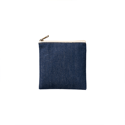 使い込む間に風合いが増すデニム素材を使用したおしゃれな印象のフラットタイプのデニムポーチです。SS・S・Mサイズの3サイズ展開で、SSサイズはイヤホンや鍵などの小物入れとしておすすめです。ファスナーの引き手部分はデニムと相性の良い、アンティークゴールドの色味になっています。また正方形なので、オリジナルプリントのデザインがはまりやすいのもポイントです。