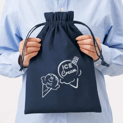 本体と巾着紐を共布にすることで高級感ある印象のコットン巾着です。口元のフリルが愛らしさを醸し出します。Lサイズは大きく存在感もばっちり。企業であればロゴマークなど、個人の方ではオリジナルデザインやメッセージをプリントしてイベントのノベルティや贈り物用の巾着として幅広く活用いただけます。