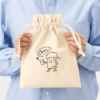 シンプルながら巾着紐に共布をつかうことで高級感を出し、フリルを強調することで可愛さを増した、そんな工夫を凝らしたコットン巾着です。Mサイズは小物入れからトラベル用の仕分けポーチとしても、幅広く使える勝手の良いサイズ感です。優しいカラーバリエーションも魅力のポイント!オリジナルプリントをいれてノベルティとしても!