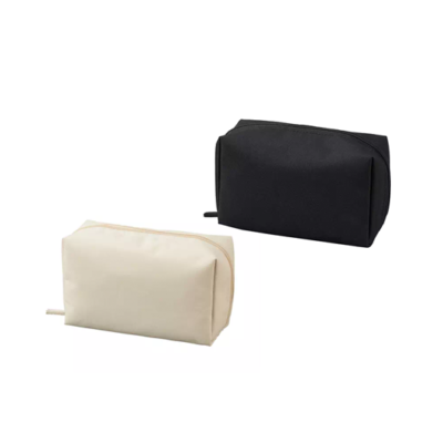厚手のしっかりポリエステルでつくった、1周マチのあるボックス型ポーチです。カラーバリエーションは2色ございます。内ポケットがあるのも嬉しい。見た目以上に容量が大きいので化粧ポーチなどとしても使えるマルチにつかえるポーチです。