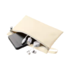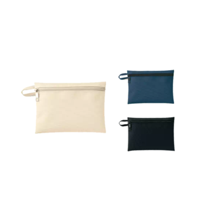 ポリエステル素材のフラットタイプのシンプルなポーチです。ストラップがついているのでとっても便利。汚れにくく、タフな素材のポリエステルは、メイク用品や文具をいれるのに最適です。ノベルティなどにはとても最適でおすすめです。カラーバリエーションは3色です。