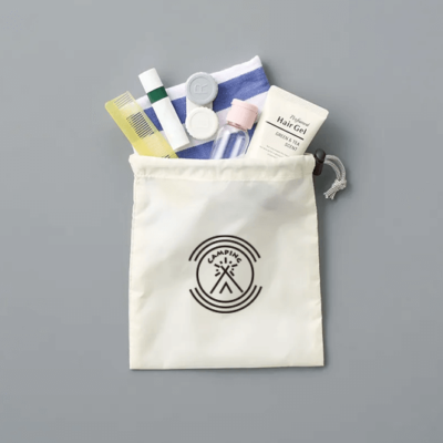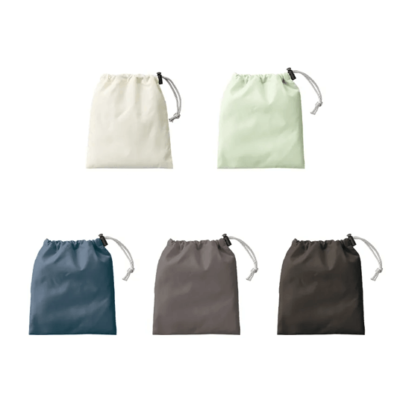 サラッとした肌触りが特徴のポリ巾着です。片側をきゅっと絞るタイプになります。こちらのSサイズはコスメやガジェットをちょこっといれてお使いいただけるサイズ感です。ホテルのアメニティなど、トラベルグッズを入れたり、使う幅多様!本体は優しいカラーバリエーションでオリジナルデザインをプリントいただけます。