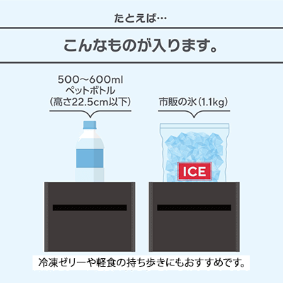 サーモス(THERMOS)のバッグにすっぽり入るコンパクトサイズの保冷バッグです。500mlペットボトル(高さ22.5cm以下)のペットボトルが1本収まるサイズ感です。複数の材質を組み合わせたアイソテックの断熱構造が冷たさをキープしてくれます。内生地は汚れをふき取りやすい生地(PEVA)を使用しています。付属の保冷剤とペットボトルや冷やしたタオルを一緒に入れて、スポーツ観戦やレジャー、通勤通学など普段使いにもオススメのアイテムです。